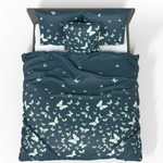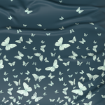 Dieser luxuriöse Kissenbezug strahlt Anmut und Ruhe aus. Die tiefblaue Farbe verleiht dem Interieur Eleganz, während die zarten, weißen Schmetterlinge Leichtigkeit und subtile Ästhetik verleihen.