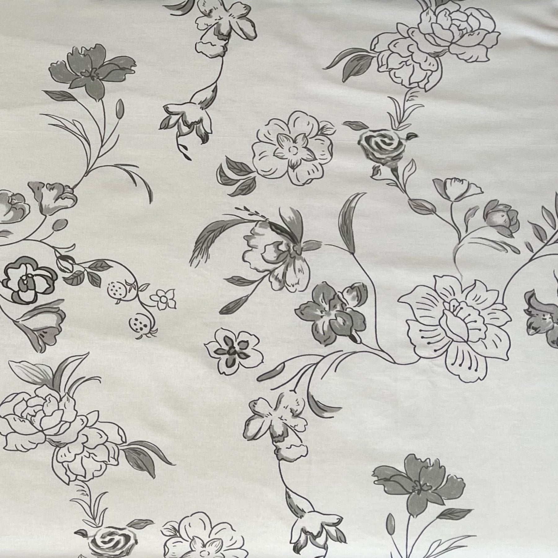 Rosewood - ein elegantes Blumenmuster mit sanften grauen Blüten, das ein Gefühl von Subtilität und Leichtigkeit verleiht. Ein klassisches Design, perfekt für einen romantischen oder minimalistischen Bettbezug.