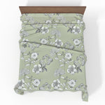 🌿 „Geneva“ – ein frisches Design im botanischen Stil für alle, die natürliche Schönheit und Sanftheit schätzen. Dieses Bettlaken ohne Gummizug mit hellem pistaziengrünem Hintergrund und gezeichnetem Blumenmuster bringt Ruhe in Ihr Schlafzimmer.