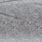 Diese Deluxe Satin-Baumwoll-Bettwäsche mit Gummizug, inspiriert von der Stadt Jaipur, zeichnet sich durch elegante und einzigartige Paisley-Muster aus, die dem Interieur einen besonderen Charme verleihen. Die Kombination von Grau und Weiß schafft Ruhe und Harmonie in Ihrem Schlafzimmer, damit Sie in einen tiefen und komfortablen Schlaf eintauchen können.