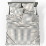 Dieses Deluxe Satin-Baumwoll Bettwäscheset mit geometrischen Mustern strahlt Eleganz und Modernität aus. Helle Farben mit dunklen Akzenten schaffen ein ausgewogenes und stilvolles Interieur, das Ihrem Schlafzimmer einen einzigartigen Charme verleiht.
