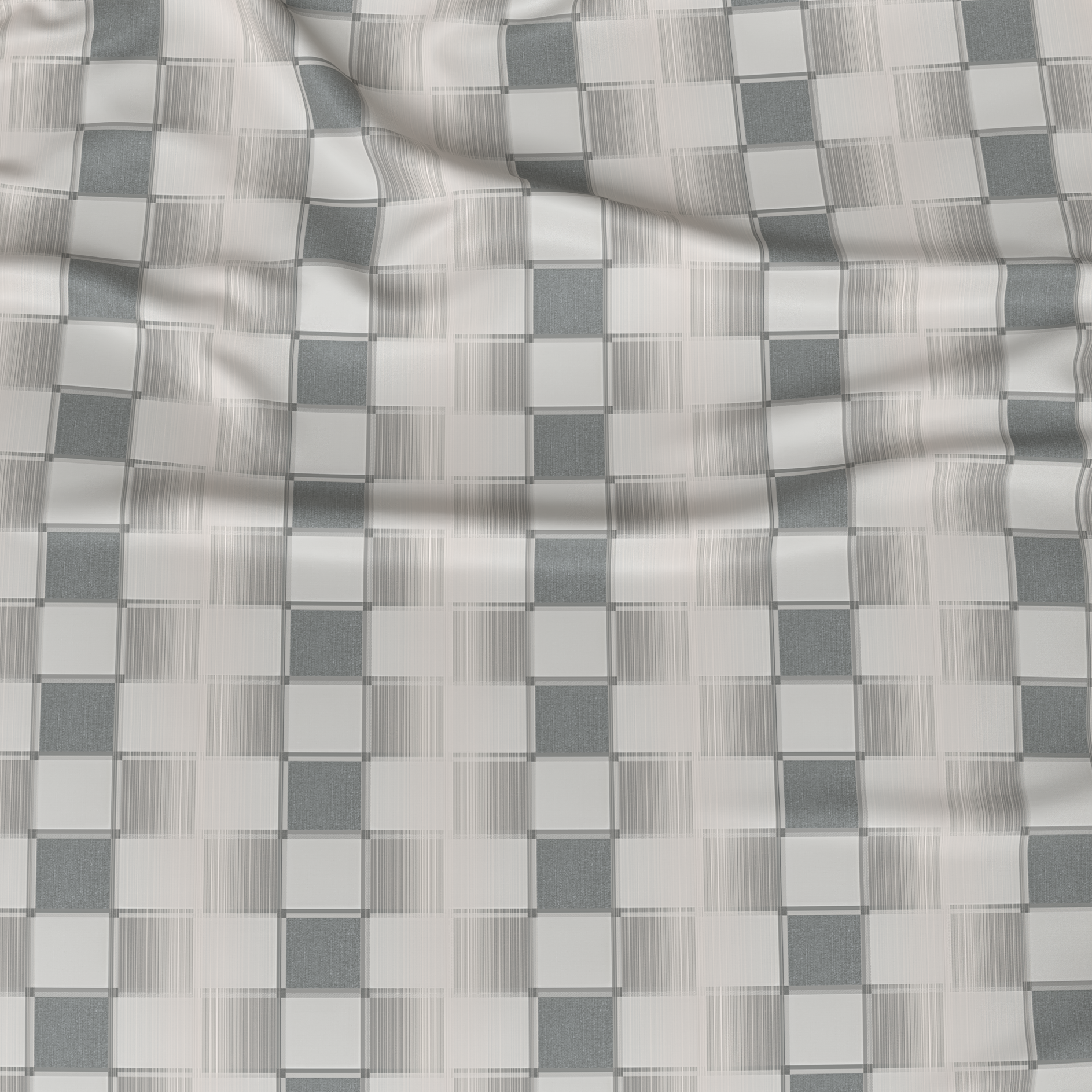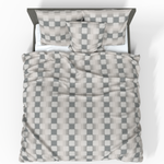 The minimalist chessboard-inspired design, combining shades of sand and gray, will perfectly complement a modern or industrial style bedroom.