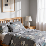 This Deluxe satin cotton bedding set, inspired by the historic city of Kraków in Poland, brings a classic garden feel into your bedroom – rich floral compositions blend with a soft grey-blue background. The flowers, like from a vintage watercolor painting, create a gentle, romantic atmosphere that invites you to slow down and enjoy the moment.